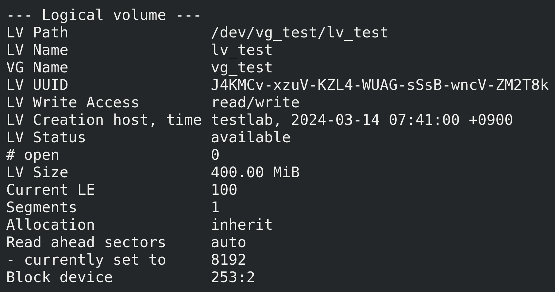 λ€μ lvremoveλ‘ μμ νμκ³ νμΌμμ€ν μ extκ³μ΄λ‘ λ§λ€μ΄μμ΅λλ€.