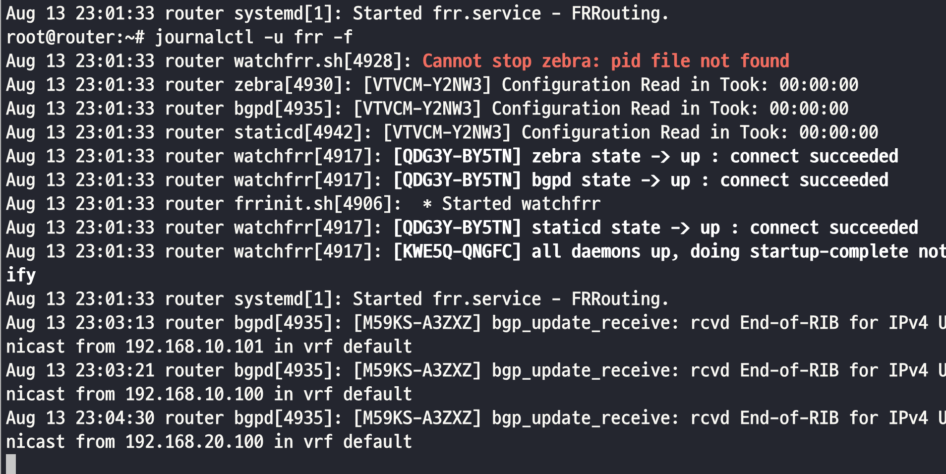 frr 4472 1 0 21:50 ? 00:00:00 /usr/lib/frr/bgpd -d -F traditional -A 127.0.0.1