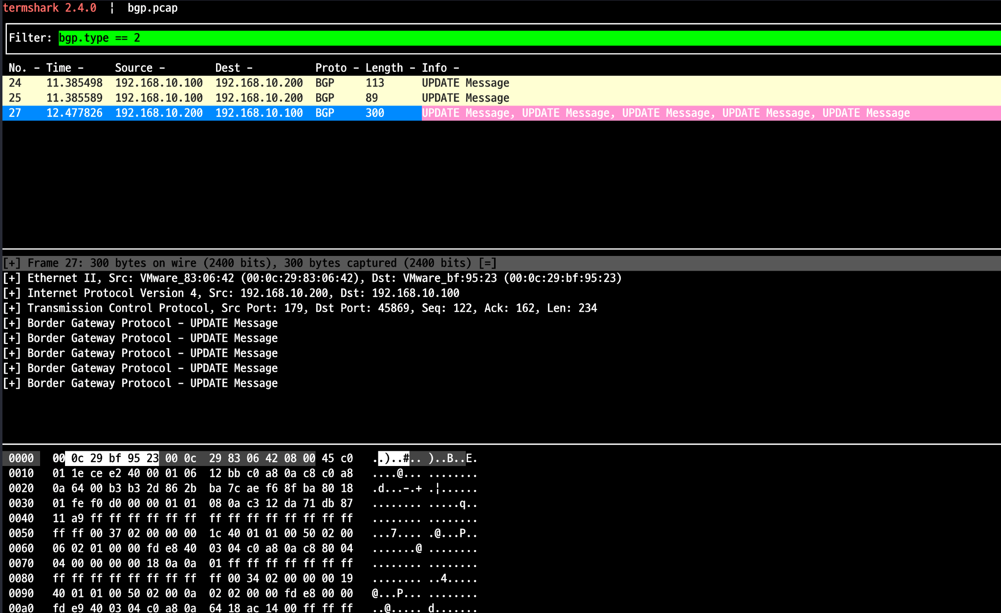 *> 192.168.10.100 0 65001 i # ๋ฉ์ธ ๊ฒฝ๋ก