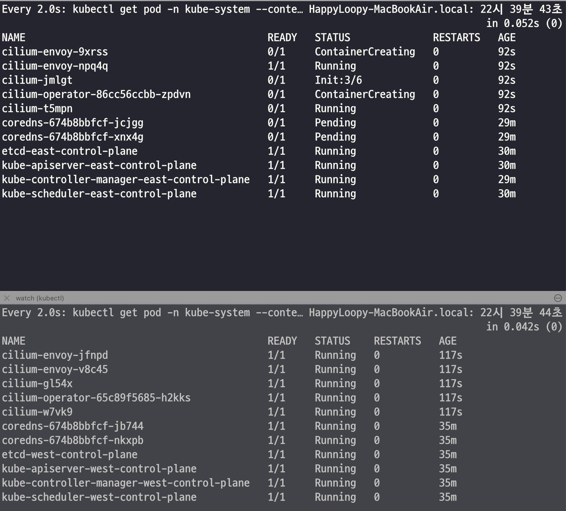 kube-system etcd-west-control-plane 1/1 Running 0 37m